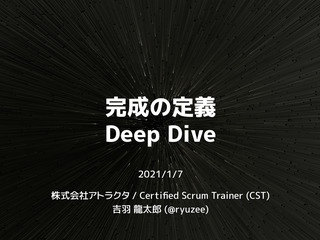 本資料は、2021年1月7日に行われたRegional Scrum Gathering Tokyo 2021のセッション 『スクラムにおける「完成」とはな...