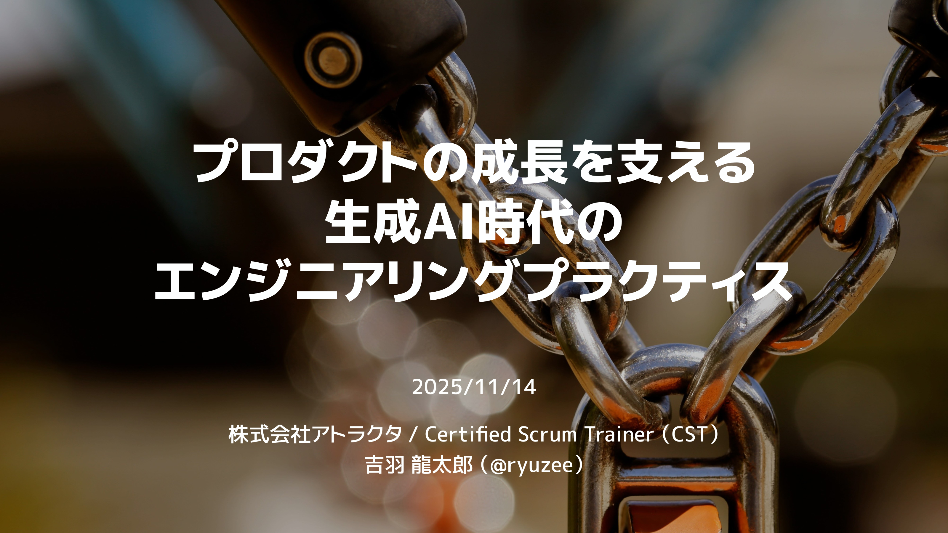 プロダクトの成長を支える 生成AI時代の エンジニアリングプラクティス 2025/11/14 fi 株式会社アトラクタ / Certi ed Scrum Trainer (CST) 吉羽 龍太郎 (@ryuzee)